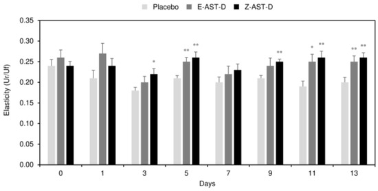 2.3. Effect of Astaxanthin Supplementation on Skin Elasticity