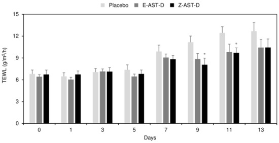 2.4. Effect of Astaxanthin Supplementation on TEWL