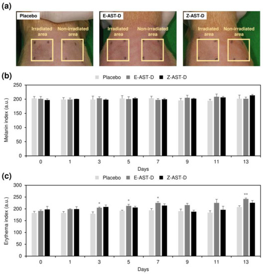 APA StyleHonda, M., Kageyama, H., Zhang, Y., Hibino, T., & Goto, M. (2022). Oral Supplementation with Z-Isomer-Rich Astaxanthin Inhibits Ultraviolet Light-Induced Skin Damage in Guinea Pigs. Marine Drugs, 20(7), 414. https://doi.org/10.3390/md20070414