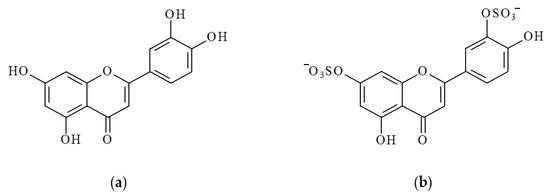 Structural formulas of luteolin (LT) (a) and luteolin 7,3′-disulfate (DSL) (b).