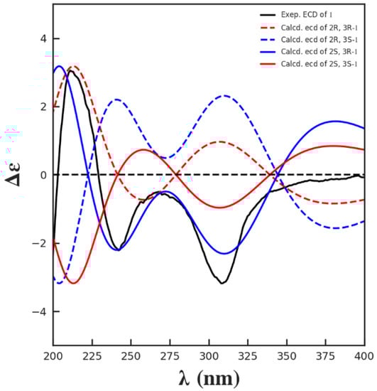 Since the NOESY spectrum of 1 (Supplementary Figure S8) did not provide enough information to determine its configuration, the absolute configuration of 1 was elucidated to be 2S, 3R by comparisons of the experimental and calculated electronic circular dichroism (ECD) spectra (Figure 3). Since the structure of 1 has not been reported previously, it is named exophilone (1).