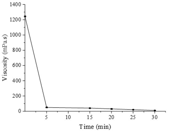Viscosity variation during enzymatic degradation of alginate. The viscosity was measured in a 100 mL reaction system with 1% (w/v) sodium alginate, 50 mmol/L Tris-HCl buffer (pH 8.0) and RT. The data represents the mean of three repeats with SD ≤ 5%.