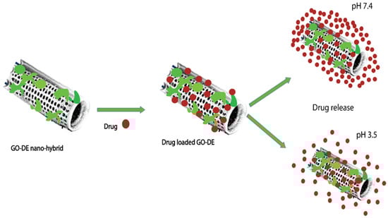 Loading of IMC onto GO–DE nanohybrid depending on the pH of the medium [83] (modified with permission, Copyright © 2013, Royal Society of Chemistry).