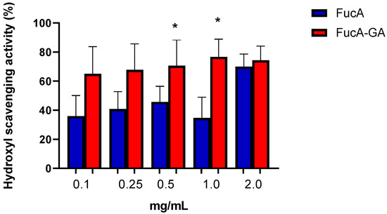 Figure 3. Hydroxyl scavenging activity. * indicates significant difference between the FucA and FucA-GA samples (p < 0.05).