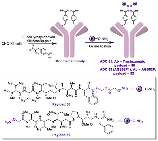 Syntheses of ADCs 51 and 53 based on oxime linkages.