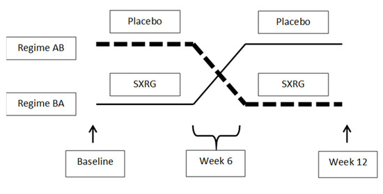 The use of the crossover designs—as in Study 2—in randomized clinical trials are popular because they can reduce bias from confounding variables and allow participants to act as their own control. Crossover trials are appropriate for use where treatment effects are short-lived in chronic conditions [46]. However, crossover trials also have complications, including the possibility of “order effects”. In Study 2, there were no consistent effects found for either of the treatment groups or the placebo groups when examining the significant outcomes. As such, we analyzed the data as four groups instead of collapsing them into two treatment groups. The need to analyze four separate groups does undermine the strengths of running a crossover trial. The true baseline at week zero was used as a covariate in all of the metabolic and inflammatory outcome measures in an attempt to reduce any carryover effects. Study 2 did not include a washout period, with the belief that six weeks on the placebo post SXRG84 treatment would not result in any carried over benefits. Furthermore, any improvements seen after six weeks on the SXRG84 treatment should have returned to baseline after the placebo in the second arm. Indeed, the gut microbiota can revert back to their initial state within 48 h of ceasing specific diets [47]. Figure 6 suggests that the gut microbiota shift that was observed in the placebo group following the SXRG84 was minimal, and many shifts observed after six weeks on the SXRG84 reverted back in the subsequent placebo period. For example, Bacteroides decreased following the SXRG84 treatment and then increased again following the placebo. Regardless, not including a washout period can make identifying treatment effects difficult. Future crossover trials examining the gut microbiome should consider a washout period.