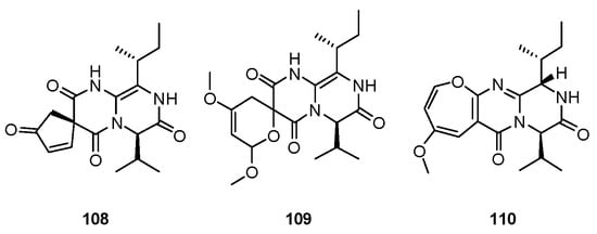 - Huang, R.M.; Yi, X.-X.; Zhou, Y.; Su, X.; Peng, Y.; Gao, C.-H. An update on 2,5-diketopiperazines from marine organisms. Mar. Drugs 2014, 12, 6213–6235. [Google Scholar] [CrossRef]