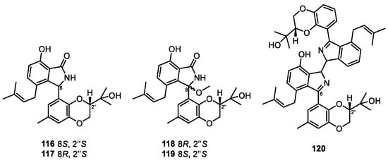 - Jiang, M.; Wu, Z.; Liu, L.; Chen, S. The chemistry and biology of fungal meroterpenoids (2009–2019). Org. Biomol. Chem. 2021, 19, 1644–1704. [Google Scholar] [CrossRef]
