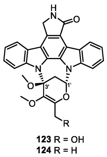- Li, T.; Du, Y.; Cui, Q.; Zhang, J.; Zhu, W.; Hong, K.; Li, W. Cloning, characterization and heterologous expression of the indolocarbazole biosynthetic gene cluster from marine-derived Streptomyces sanyensis FMA. Mar. Drugs 2013, 11, 466–488. [Google Scholar] [CrossRef] [PubMed] [Green Version]