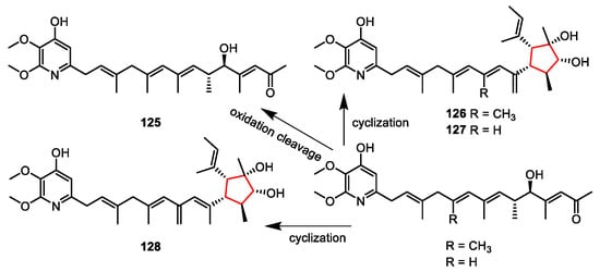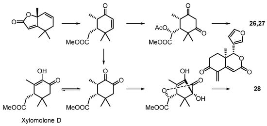 Proposed biosynthetic pathway for compounds 26–28 [].