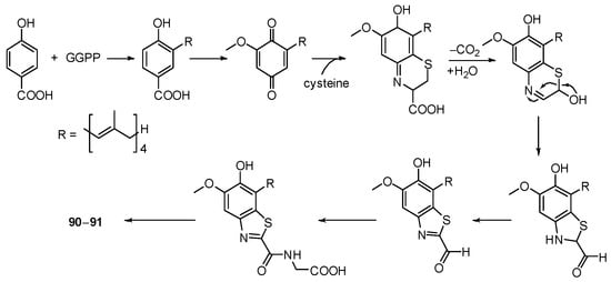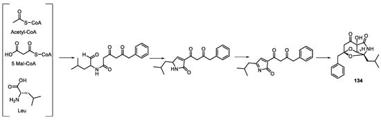 Proposed biosynthetic pathway for compound 31 [].