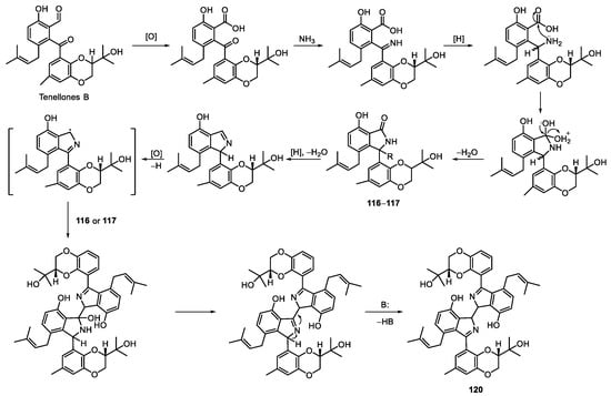 Proposed biosynthetic pathway for compounds 6–20 [,,,].
