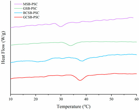 DSC curves of GCSB-PSC, BCSB-PSC, GSB-PSC, and MSB-PSC.