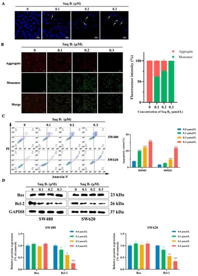 2.3. Saq B1 Induces Apoptosis in Human CRC Cells by Regulating the PI3K/AKT Pathway