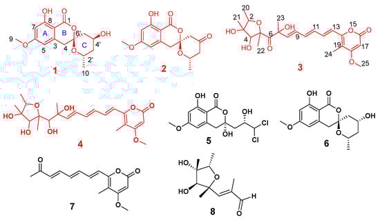 Chemical structures of compounds 1–8.