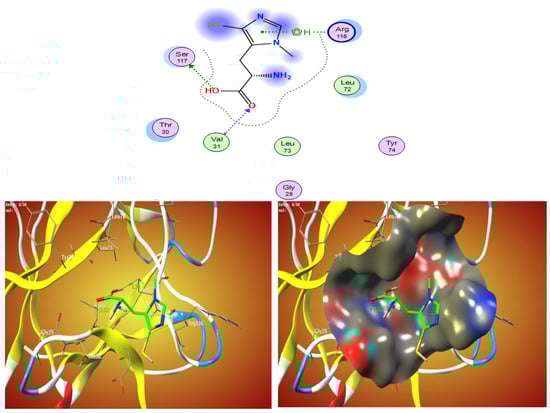 2.2. Molecular Docking Interaction between Ovothiol A with 1AFC (PDB ID: 1AFC)