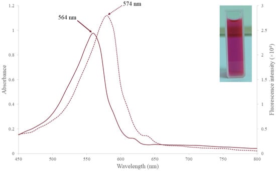 The UV-visible absorbance spectra (solid line) and fluorescence emission spectra (dotted line) of C-PE extracted from Pseudanabaena sp. (UPMC-A0103). C-PE of Pseudanabaena sp. showed an absorption maxima at 564 nm and fluorescence emission maxima at 574 nm.