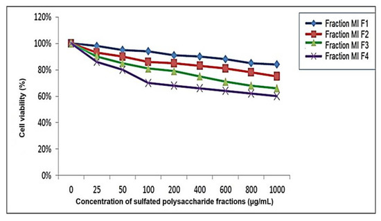 Percentage of cell viability of fractions of sulfated polysaccharides from seaweed Macrocystis integrifolia.