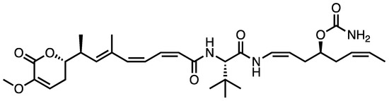 In recent years, the supply of marine products was discussed from the ethical and legislative perspective, and the Nagoya protocol, entered into force in 2014, represents one of the first results of this reflection [46]. The production of the polyketide by an efficient synthetic strategy has overcome the supply problem and prompted clinical studies to define its therapeutic potential in cancer patients.