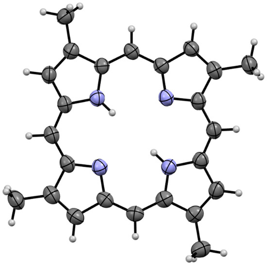 Compound 1a was isolated as a dark red crystalline solid. HR-ESIMS gave a protonated molecular ion [M + H]+ at m/z 367.1924 consistent with the molecular formula C24H23N4 (requires 367.1923). To our surprise, 1H NMR of the compound in CDCl3 (600 MHz) revealed the presence of a compound with four-fold rotational symmetry as revealed by three unique electronic environments (δH 10.12; CH-5, 9.14; CH-3, 3.76; C-2-CH3). We note that appropriate 1H NMR integration was achieved by applying a 10 second relaxation time to the pulse sequence. All attempts to obtain reliable 13C NMR data for compound 1a were hampered by significant signal suppression, presumably caused by the significant aromatic ring current present in the system. The difficulty in obtaining reliable 13C NMR spectra for free base porphyrins has been documented elsewhere [5]. The structure of compound 1a was subsequently assigned unambiguously via single crystal X-ray diffraction (Figure 2) and assigned the trivial name isabellin A. The extremely reduced state of compound 1a is a biosynthetically anomaly, and to the best of our knowledge is the first report of a highly reduced geo-porphyrinoid [16] isolated from a living organism.