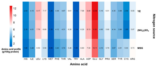 2.2. The Effects of Nitrogen Sources on the Amino Acid Profile