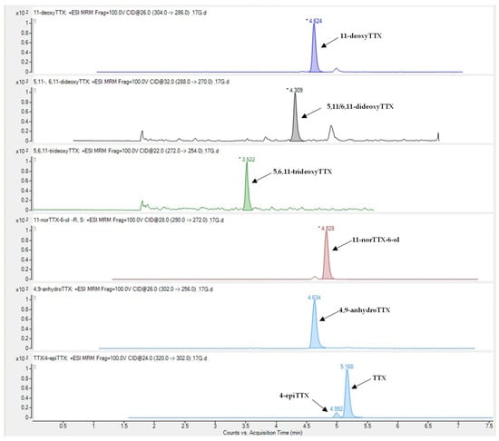 Representative LC-MS/MS chromatogram of TTX and its analogues in Lagocephalus sceleratus samples.