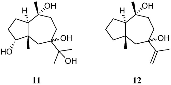 - Shaker, K.H.; Müller, M.; Ghani, M.A.; Dahse, H.-M.; Seifert, K. Terpenes from the soft corals Litophyton arboreum and Sarcophyton ehrenbergi. Chem. Biodivers. 2010, 7, 2007–2015. [Google Scholar] [CrossRef] [PubMed]