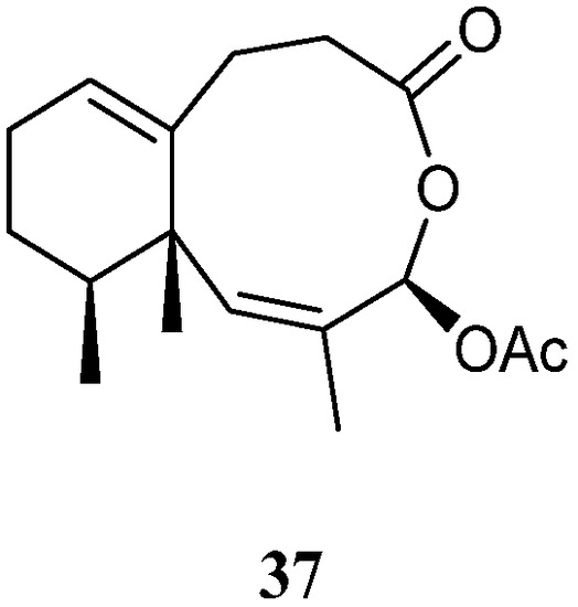- Grote, D.; Dahse, H.-M.; Seifert, K. Furanocembranoids from the soft corals Sinularia asterolobata and Litophyton arboreum. Chem. Biodivers. 2008, 5, 2449–2456. [Google Scholar] [CrossRef] [PubMed]