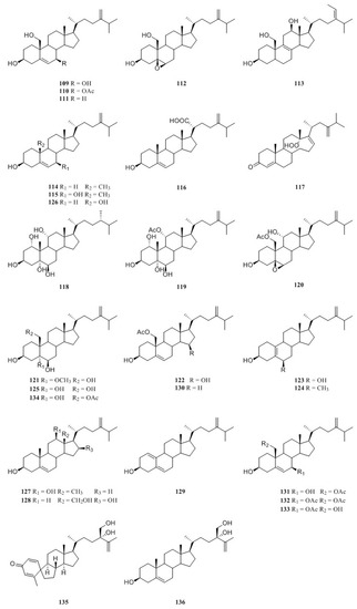 - Lin, C.-C.; Whuang, T.-Y.; Su, J.-H.; Hwangd, T.-L.; Wu, Y.-C.; Sung, P.-J. 4α-Methylergosta-22(E),24(28)-dien-3β-ol, a new marine sterol from the octocoral Nephthea columnaris. Nat. Prod. Commun. 2017, 12, 345–346. [Google Scholar] [CrossRef]