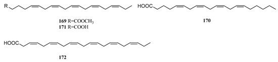 - Ochi, M.; Futatsugi, K.; Kume, Y.; Kotsuki, H.; Asao, K.; Shibata, K. Litophytolides A and B, two new lipid metabolites of a soft coral Litophyton sp. Heterocycles 1989, 29, 39–41. [Google Scholar] [CrossRef]