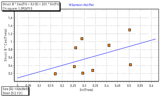 The identification of the silver carbonate nanoparticles in the hexagonal phase at high concentrations also raises questions regarding their size. A thorough investigation using the Williamson–Hall plot [42] (Figure 6) is warranted to gain insights into the crystallite size and lattice strain of the biosynthesized BioAg2 CO3NPs nanoparticles from X-ray diffraction data.