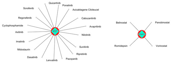 The KIT protein was observed to be a potential target for most of the anti-cancer drugs. HDAC1 was shown to be a target for three anti-cancer drugs.