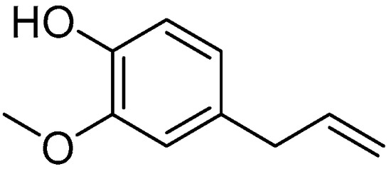 - Ulanowska, M.; Olas, B. Biological properties and prospects for the application of eugenol—A Review. Int. J. Mol. Sci. 2021, 22, 3671. [Google Scholar] [CrossRef] [PubMed]
