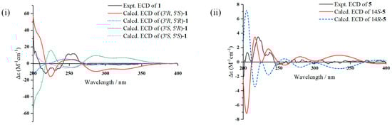 (i) Experimental and calculated ECD spectra of 1; (ii) experimental and calculated ECD spectra of 5.