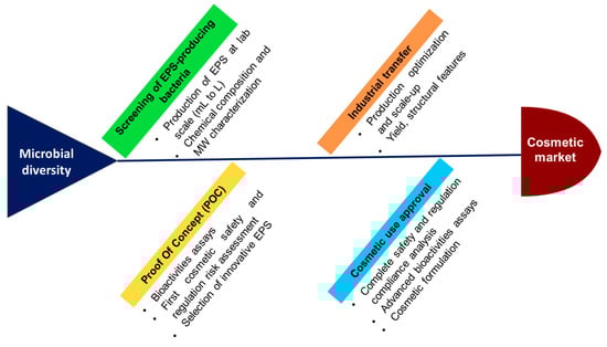 A major step in developing bacterial-derived ingredients for cosmetic applications relies on production and purification processes. EPS production is dependent on various parameters and process optimization is a key factor for further industrial applications. EPS production involves a common process regardless the targeted development field; examples of EPS production for cosmetics and their specific features are presented in Section 5.3.