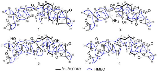 Key 1H–1H COSY and HMBC correlations of compounds 1–4.