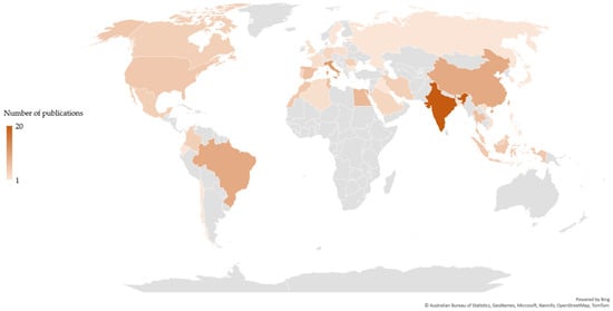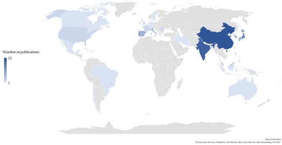 Geographic distribution of the chitin/chitosan value chain-related publications based on the country of the corresponding author(s).