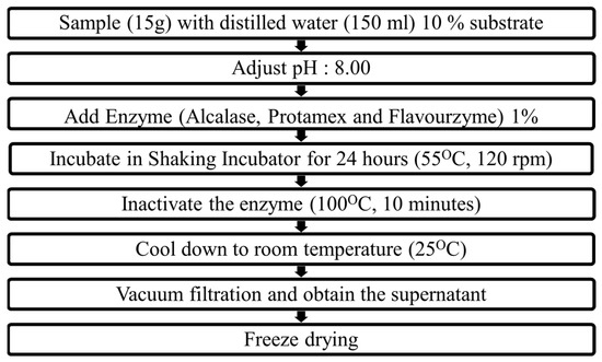 Figure 1. Enzyme-assisted M. edulis hydrolysate preparation process.