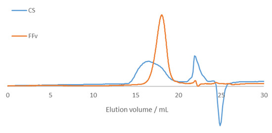 Crude fucoidan and chitosan were analysed using size exclusion chromatography (SEC), and the elution profiles can be seen in Figure 2.