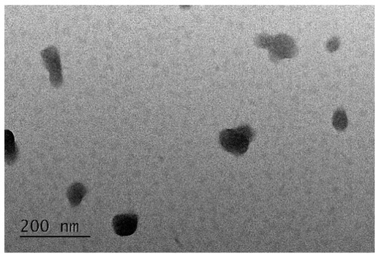 The morphological aspect of the produced nanoparticles was characterised by transmission electronic microscopy (TEM), and Figure 7 displays the results obtained for nanoparticles corresponding to FFv/CS = 2/1 (w/w), which were considered representative.
