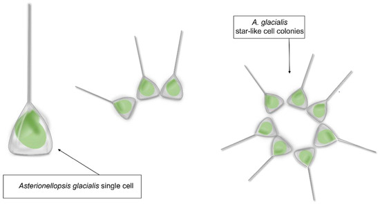 Asterionellopsis glacialis has been considered for a long time as a cosmopolitan and eurytopic (i.e., able to tolerate a wide range of environmental conditions) species, often abundant in phytoplankton communities of cold to temperate waters [19,20]. A recent taxonomic study by Kaczmarska et al. [21], aiming at testing the conspecificity of geographically distant strains of A. glacialis, has revealed the occurrence of extensive cryptic diversity and led to the description of four new species. However, these new findings have not been incorporated into already existing or new -omic data deposited in public repositories, with relevant implications for biotechnological studies. For instance, within the Marine Microbial Eukaryte Transcriptome Sequencing Project [22] (MMETSP; https://www.imicrobe.us/; accessed on 14 October 2022), there are three transcriptomes deposited as A. glacialis that, according to Kaczmarska et al. [21], may be attributed to A. cf. glacialis (CCMP134), A. thurstonii (CCMP1581) and probably to A. maritima (strain from Martha’s Vineyard Coastal Observatory site) according to the sampling locality. Similarly, the whole genome deposited in GenBank as Asterionellopsis glacialis strain A3 (collected in July 2016 along the coast of the Arabian Gulf as reported on https://www.ncbi.nlm.nih.gov/nuccore/1930234978; accessed on 6 October 2022) needs to be confirmed as such in the framework of these new taxonomic findings. The taxonomic characterization of the strains under study is a fundamental prerequisite. The advantage of using microalgae in marine drug discovery is associated with their metabolic plasticity, associated in turn with the production of compounds that can find applications in different biotechnology sectors [17,23] and with the possibility of cultivating them in large quantities in an eco-friendly and eco-sustainable way.