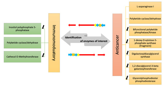 O-methyltransferase family 3, as discussed in Section 2.3.1, catalyzes the O-methylation of various secondary metabolites that have a broad spectrum of biological activities, including anti-inflammatory, anti-carcinogenic and anti-atherogenic properties [43]. Glycerolphospodieter phosphodiesterase, as already reported in Section 2.3.2, is involved in the synthesis of phospholipids known to have high anti-cancer activity [48].