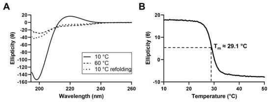 - Greenfield, N.J. Using circular dichroism spectra to estimate protein secondary structure. Nat. Protoc. 2006, 1, 2876–2890. [Google Scholar] [CrossRef]