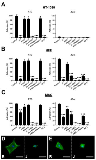 2.3.3. Integrin and Heparan Sulfate Chain Adhesion Interactions of Jellyfish Collagen