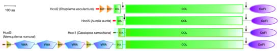 - Zhang, X.; Boot-Handford, R.; Huxley-Jones, J.; Forse, L.N.; Mould, P.; Robertson, D.L.; Li, L.; Athiyal, M.; Sarras, M.P. The Collagens of Hydra Provide Insight into the Evolution of Metazoan Extracellular Matrices. J. Biol. Chem. 2007, 282, 6792–6802. [Google Scholar] [CrossRef]