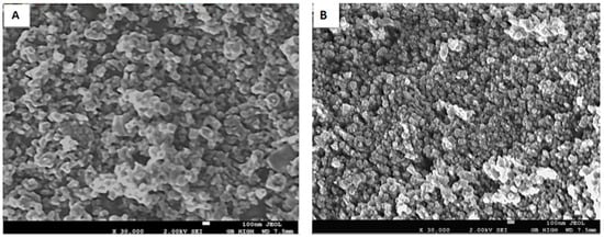 SEM images for: (A) BTiO2 and (B) CTiO2.