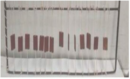 A steel frame with a dimension of 100 cm × 80 cm was used to hang the steel panels using nylon thread (Figure 10).