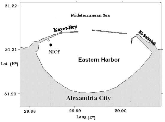 - Faragallah, H.M.; Tadros, H.R.Z.; Okbah, M.A. Nutrient salts and chlorophyll-a during short term scale in the Eastern Harbor, Alexandria (Egypt). Egypt. J. Aquat. Res. 2009, 35, 243–250. [Google Scholar]