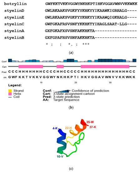 - Lee, I.H.; Cho, Y.; Lehrer, R.I. Styelins, broad-spectrum antimicrobial peptides from the solitary tunicate, Styela clava. Comp. Biochem. Physiol. 1997, 118B, 515–521. [Google Scholar] [CrossRef]