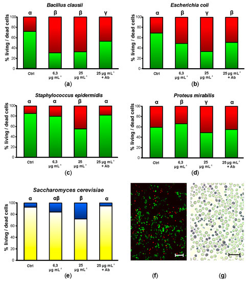 2.4. Botryllin Increases the Mortality of Bacterial and Yeast Cells